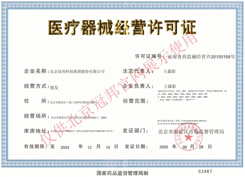 北京冠邦科技集團股份有限公司是集研發(fā)、生產、銷售為一體的醫(yī)療器械企業(yè)。2004年入駐北京市中關村上地信息產業(yè)基地,榮獲“高新技術企業(yè)”認證、中國醫(yī)療器械CMD質量體系認證和CE認證。